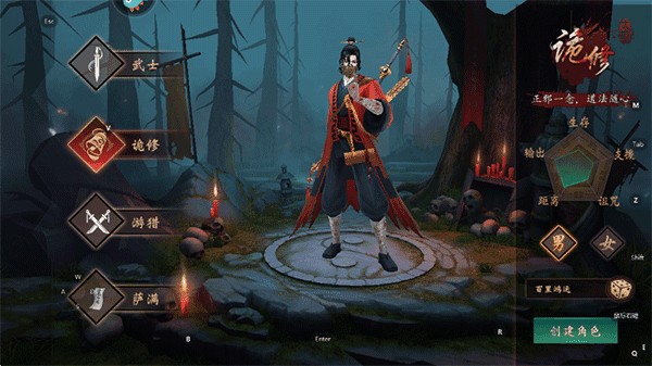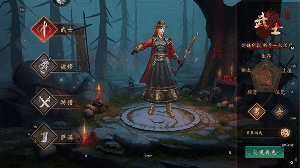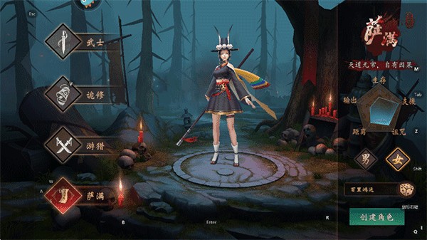 2、游戏中包含四大职业,武士、诡修、游猎、萨满,玩家可选择其一并输入ID以创建角色;