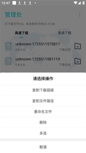7.点击下载完成的内容,可以对其进行一些基础操作
