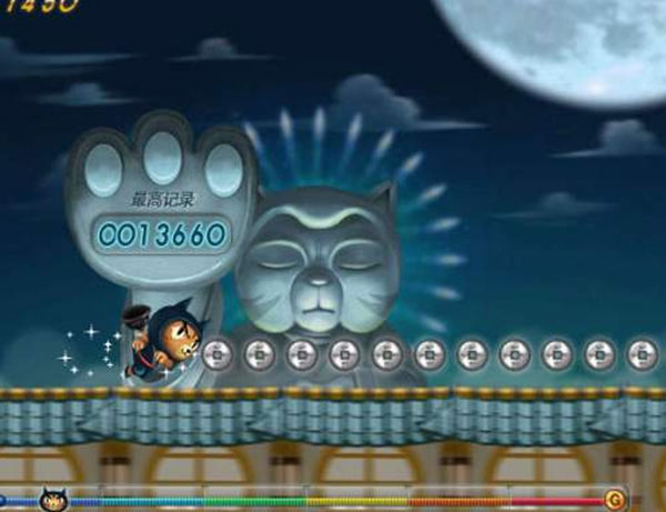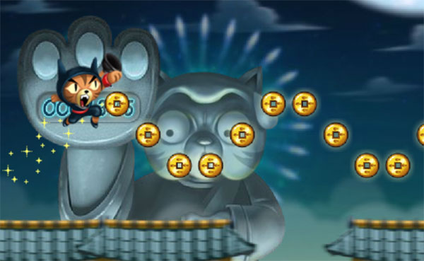 飞天忍者猫是一款内容非常有趣的休闲闯关类游戏,玩家在其中作为一只忍者猫快速进行任务内容的挑战,你需要的就是操作可爱的猫咪不断向前冲,收集路上的银子和需要的道具,获取到更高的分数。画质非常的精美,玩家可以通过点击控制猫咪的跳跃,在这里更好的进行闯关,为玩家带来轻松愉快的游戏体验,很容易就可以进行操作,非常丰富的关卡可以进行选择,让玩家可以快速战斗,感受紧张刺激的体验。