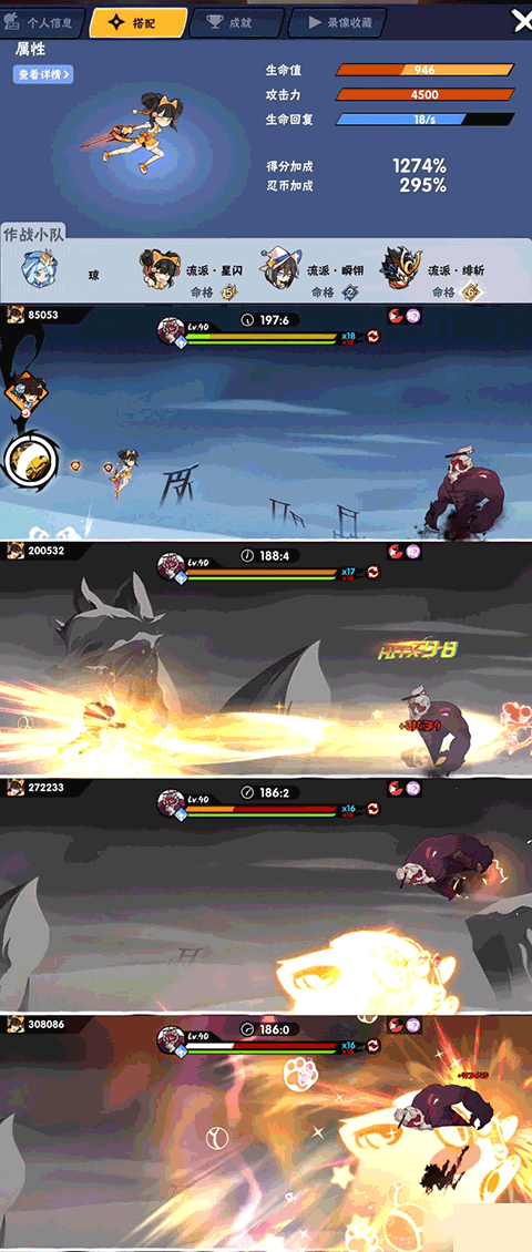 下面这张图为测试基础面板图(天赋中有一个+100忍术攻击力),实际测试时带有两个“闪点”,因此忍术期间测试面板为4500+100+90*2=4780,忍术期间吃了两个镖,镖的伤害为4680*4=18720