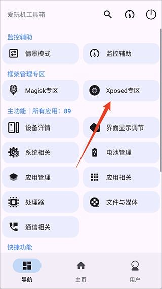 2、然后进入爱玩机工具箱app中点击【xposed专区】