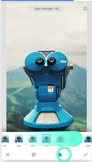 Snapseed 中的大多数调整都是这样工作的:在图像上垂直滚动以选择参数,然后水平滑动以更改参数值。