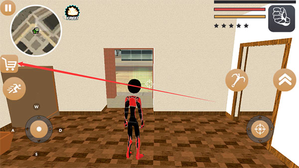 1、这个红色的角色就是你所操控的角色,可以快跑,跳跃,也可以扔出绳索,可以挥拳和腿踹,围绕这个游戏的名称,绳索这个东西就是这个角色的灵魂,它的作用非常的大,可以对静态物品(座椅,栏杆,骑车等)造成大量伤害和击飞效果。