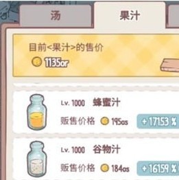 其次就是果汁,在游戏中后期会比较好卖,果汁的食谱开发就比汤简单的多了,像是玉米汁、胡萝卜汁、各种果汁等等,大家都能做出来。最后就是炒菜了,炒菜的菜谱是比较麻烦的,但是前中期大家发展这个菜谱的话很好卖,可以尝试水果炒菜。