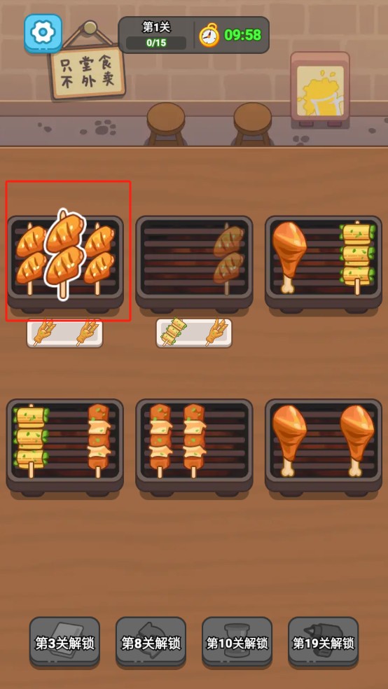 2、体验真实而趣味的烧烤模拟,玩家需合理选择烧烤菜谱,以满足不同需求。
