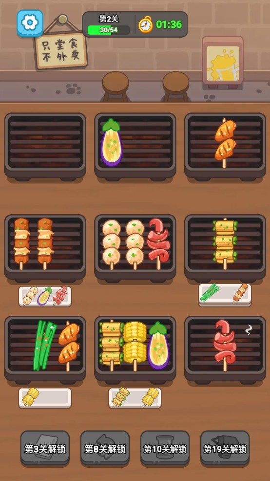 3、将一盘盘散发诱人香气的烤串呈现给顾客,只需轻松拖动和点击享受烧烤带来的无穷乐趣。