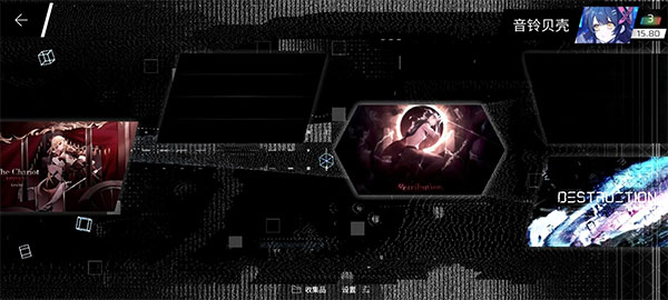而进入第八章后,可以看到我们刚刚解锁的新曲,背景出现了乱码。原来刚刚解锁的是第二、第四和第五个曲子。可以看到最右侧还有一首歌,那个应该就是隐藏曲了,不过现在还无法解锁!但是我们看到了第三个的曲绘框开放解锁了,至少出现了新的方向。