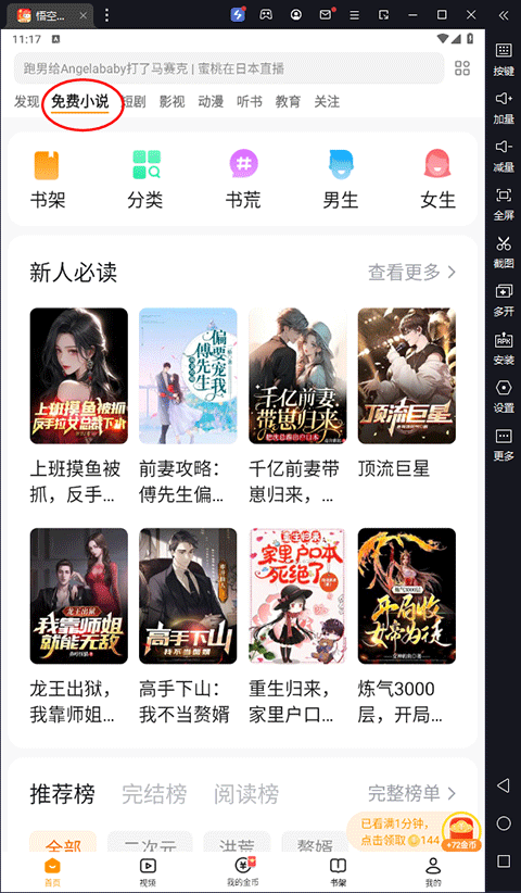 1、首先选择免费小说栏目,然后选择想要观看的小说