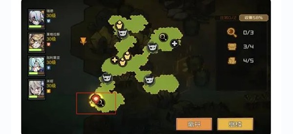 如果已经探索右边的一半地图中途退出的话,再次进入游戏关卡进入传送阵会直接传送到右边的地图,那么就会卡在方框这个位置找不到出路,这个时候就要重新进关卡,不要进传送阵,把左边的地图也刷出来就好了。