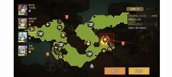 1、战斗时可以开启自动或手动攻击给玩家多种选择,完成一定数量的关卡会让你自由探索地图。