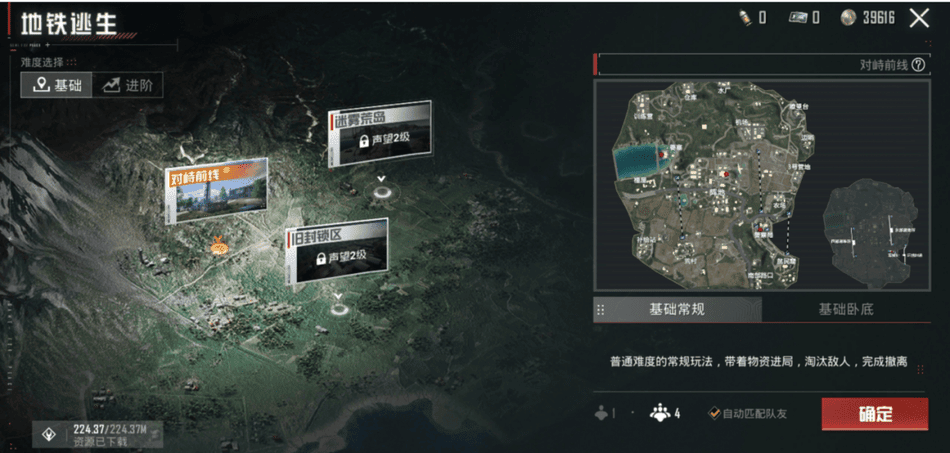 在基础模式中,地图上的物资数量较少并且品质普通,特种兵被淘汰仅会丢失背包内的物资,不损失武器装备;在进阶模式中,地图上会刷新高价值的物资,特种兵也需要携带价值达到一定金额的装备才能进入对局。特种兵被淘汰不仅会掉落背包物资,也会一定概率掉落身上的武器装备。在卧底模式中,特种兵携带随机装备进入对应难度的残局,争取安全撤离。