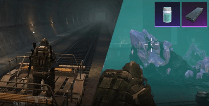 地图上的地下矿洞属于信号干扰区。特种兵进入后信号值会持续削减,使用道具可以抵御信号干扰。矿洞内有地下大矿机,可以将其激活开采大量的物资。除外,矿洞里也有地铁运输,特种兵可以通过手摇车在几个站点间快速转移。