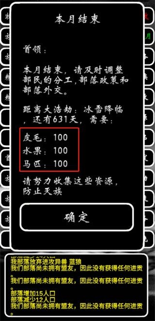 补:第二推荐60%以上的觅食或者采集或者圈养,剩下的全点种植,我建议尽量二次分配就只分两个效率很高,我建议去结盟只需要付出最多800人口能让你拿到资源他经常给你送很快就达标了前期靠结盟能把渡劫配齐,后期就换或者打。随缘过劫难。看脸。