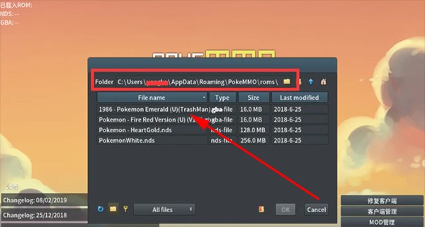 2、然后将解压后的rom文件,导入到【pokemmo/roms】中