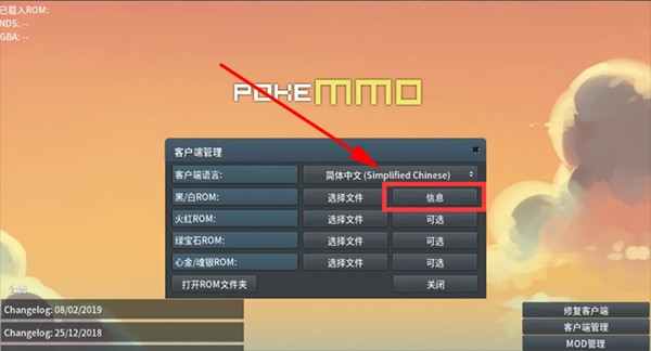 3、返回游戏界面,找到客户端管理下的黑/白ROM,点击后面的选择文件按钮,找到ROM文件夹下的黑/白ROM,双击即可
