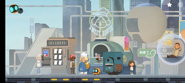第一关,进入大都市之后,先走到最右边,会有一个门,尝试一下打不开,这时候再回去找那个在球球里面的人,他就会给你提要求,要关于猫的杂志和冰淇淋。