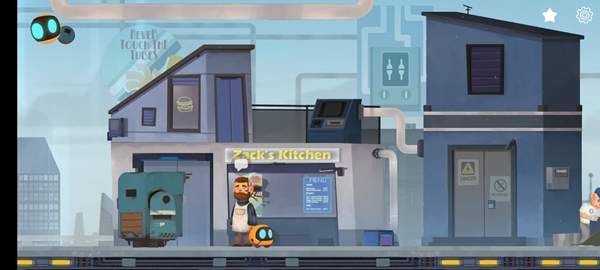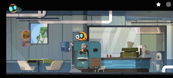 2、在餐厅里面可以发现一个易拉罐,然后走过去捡起来,之后出餐厅。那个吸尘器机器人就会跟随你,然后来到轮船的内部;