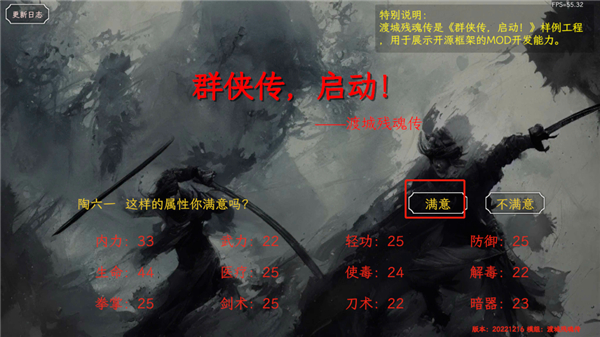 2、点击满意的话,就能进入游戏,不满意的话,系统会重新匹配属性值;
