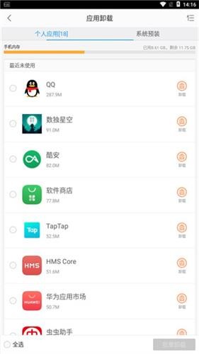 3、点击手机加速还可以快速清理手机内存,提高手机使用速度。