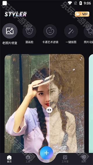 1、在本站下载安装好styler特效相机后,打开进入,主页面有各种特效的快捷方式,点击即可上传图片体验。