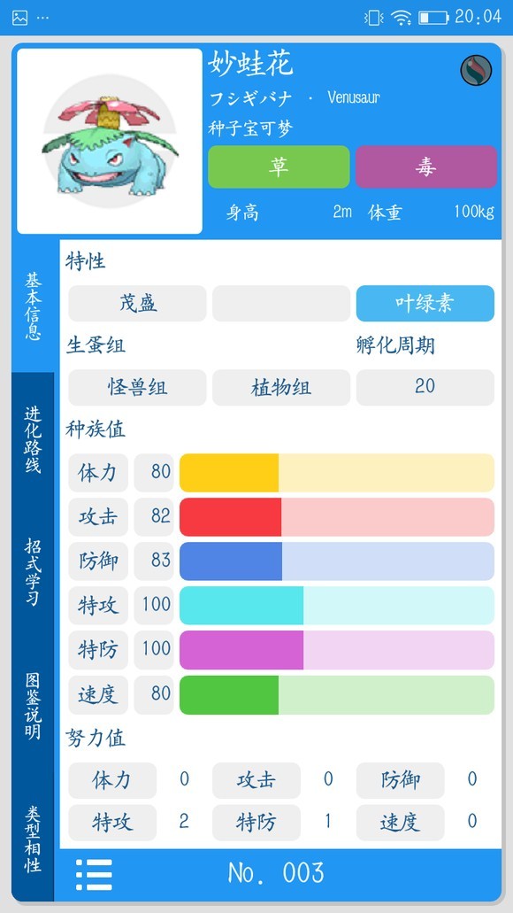 性格:保守/胆小 特性:深绿/叶绿素