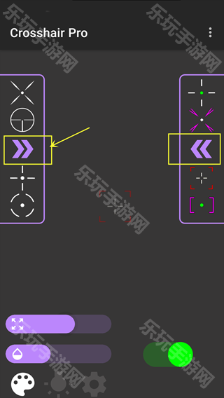 3、当然软件内的准星类型远不止展示的这些,可以点击下图所示的箭头按钮查看更多的准星类型。