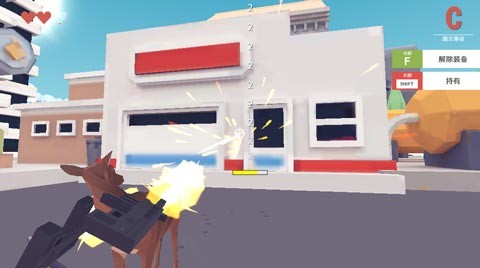 手枪作为沙雕鹿中最基础的武器,装备的时候还伴随着一段酷炫的动画,不过实战威力就很一般了,单发伤害为10点,子弹频率较慢。可以通过破坏交通工具和大楼获得。