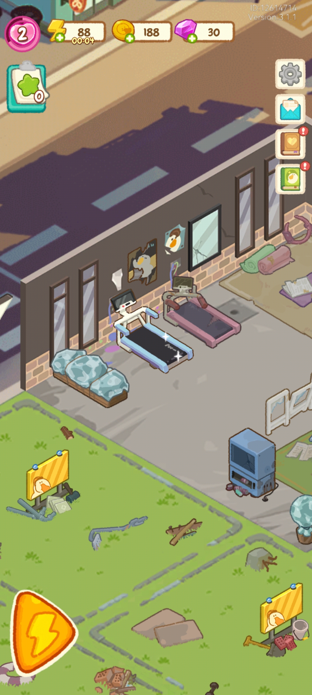 肥鹅健身房游戏攻略打开肥鹅健身房最新版本,点击左下角的闪电图标。