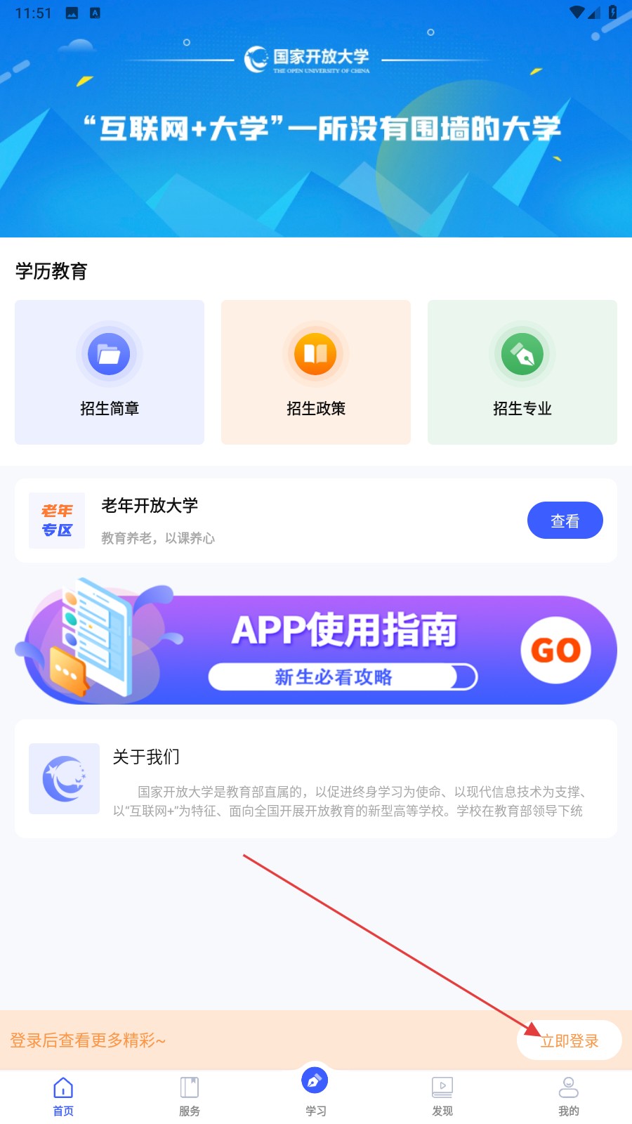 2、在首页点击右下角【立即登录】,进入登录页面。