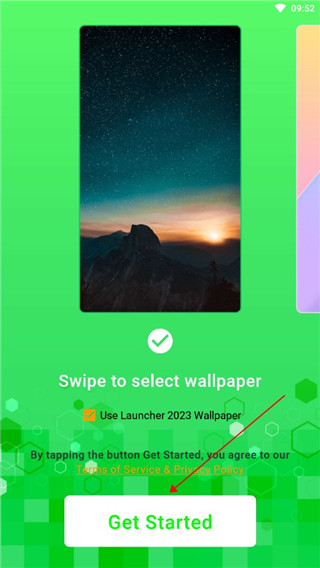1、下载好app后,点击进入,首先是选择桌面背景,这个可以自由更换的,现在随便选一个就行,完成后点击下方下一步。