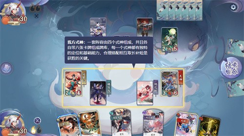 我方式神:一套阵容由四个式神组成,并且各自带八张卡牌组成牌库,每一个式神都有独特的定位和基础能力,合理搭配相互取长补短是获胜的关键。