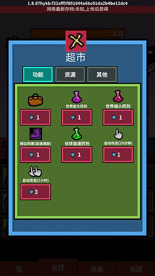 7、在超市中,我们可以通过购买功能、资源等道具帮助我们更好地进行刷怪,