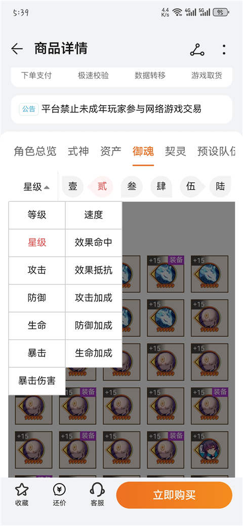5、点击查看详细数据,功能跟藏宝阁一样,可以查看御魂等资产