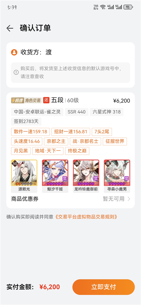 7、支付后即可前往游戏查看,如未到账可在个人中查看订单