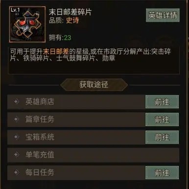 兵阶:每个英雄固定带两种士兵,不同英雄有不同的兵阶属性;升级需要兵阶碎片及电力;