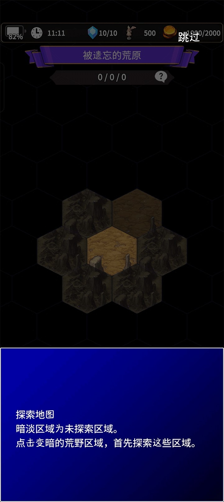 3、在被遗忘的荒野地图中,观看到六边形组合成为一个区域,点击选择进入探险。
