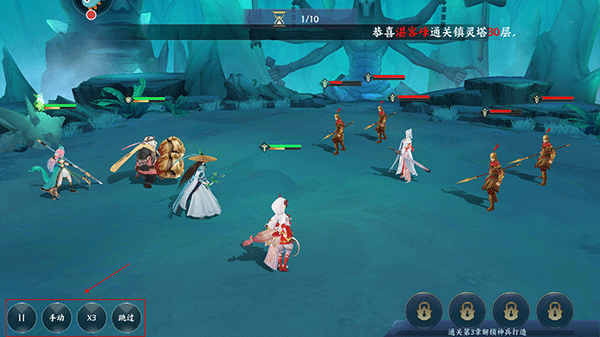 3、战斗开始后,你可以选择手动战斗,也可以直接跳过战斗过程