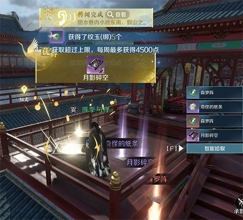 月影碎空甜水巷传送点落地(1157,968)开个宝箱,会获得传闻,怡红背后的这个就是了。