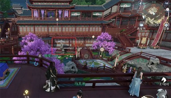 在太学馆(1365,1148)这个位置。用吸星揽月把旁边的小箱子挪过来就有宝箱啦。