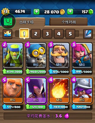 打法:在对方进攻的路线放下女巫清场,女巫快过桥的时候下巨人平推。炸弹人守人海,火枪手、哥布林、弓箭手防守+辅助进攻,骑士防守,火球备不时之需。