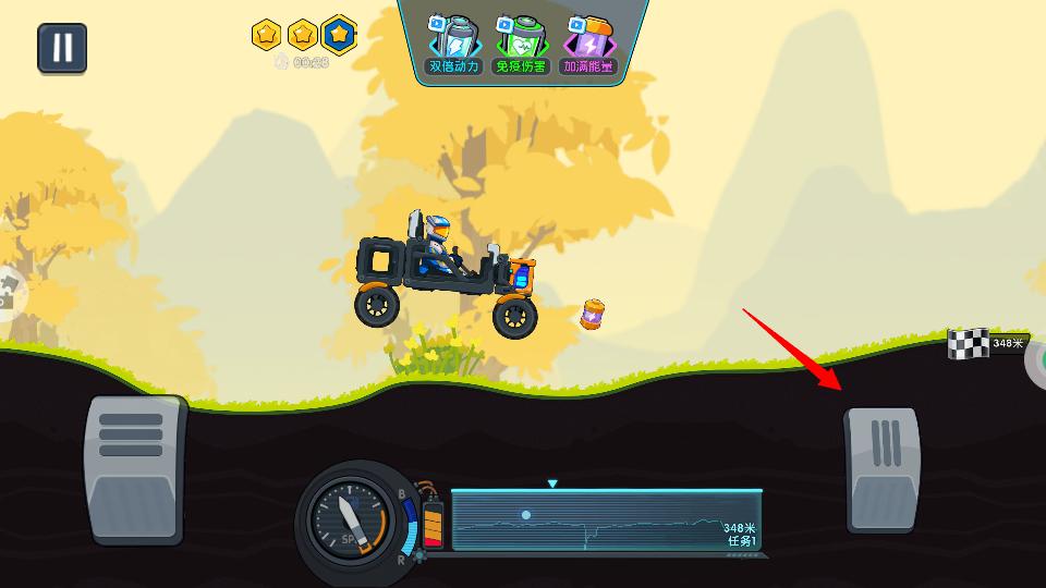 2、在横版关卡中集中精力操控赛车高速躲避障碍并安全抵达终点。