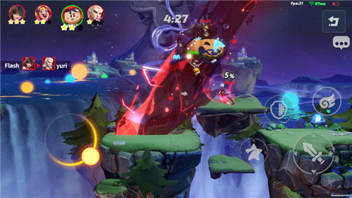 3、我们战斗是在一个悬空的平台上的,平台边缘被称为死线,当你被人击打到死线是很危险的,所以在战斗是要多注意自己的位置。