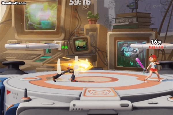 5、每一局的pk战斗时6分钟,在战斗界面顶部的是pk时间,如果在时间结束后双方剩余的生命一样,将迎来决胜时刻,决胜时刻会增加6分钟,次数两人的击飞值会变成300,而且同时平台会慢慢变小,双方的对决也会越来越激烈。