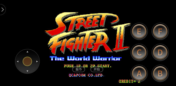 1、打开街头霸王2汉化版手机版,先点击“投币”,再点击“开始”。