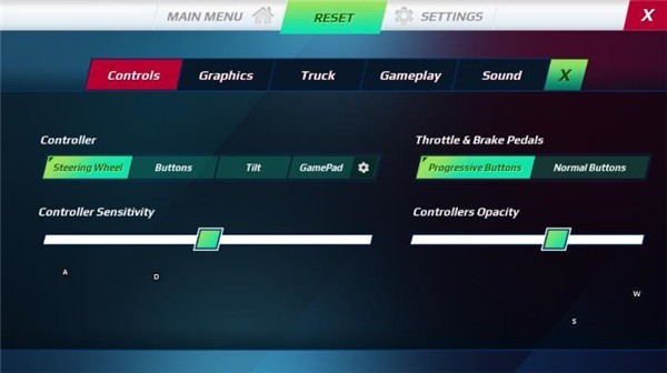 2、点击右上角菜单,点击左侧钥匙图标启动卡车,即可开始按踏板操作,坐标为方向盘,右侧为刹车和油门,油门上方为前进和倒挡;