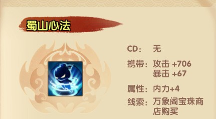 绝顶心法,可以提升超量的攻击和大量的暴击