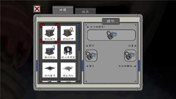 3、你可以点击提示,了解游戏中的玩法技巧,例如:怎样把锁破坏,强行开锁等等。