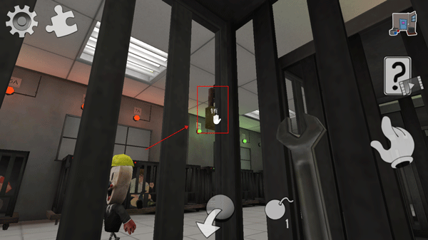 1、进入恐怖冰淇淋4最新版后,你发现你被困在了一个笼子里,你需要离开这个笼子并救出你的伙伴,首先将视角移动至左边的长凳并晃动凳子