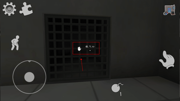 5、笼子打开后往右边走,墙角处有一个通风口,打开它即可逃出笼子来到另一个地方