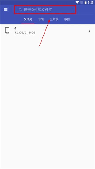 1、在本站下载并安装软件后打开,进入软件首页后可以直接搜索手机内的文件夹寻找歌曲;